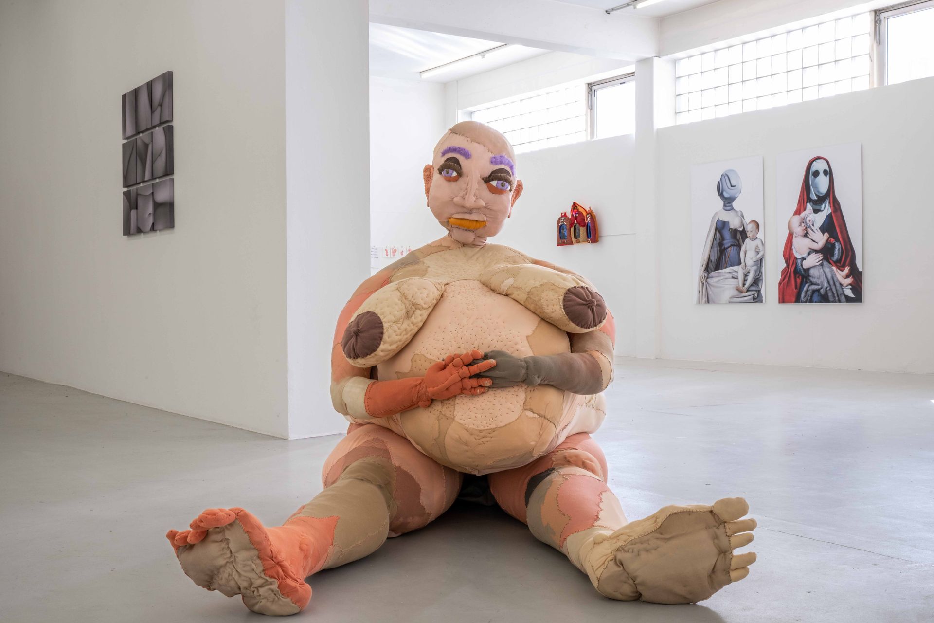 Die Ausstellung hinterfragt das mythische und romantisierte Bild der bedingungslos liebenden Mutter* und zeigt Kunstwerke, wie eine üppige Kissen-Venus und die Mutter als kinderfressendes Monster.